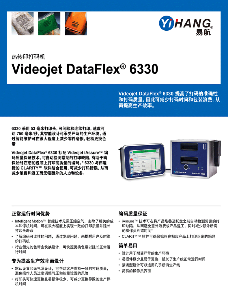 6630采用53毫米打印头,可间歇和连续打印,速度可达750毫米/秒。