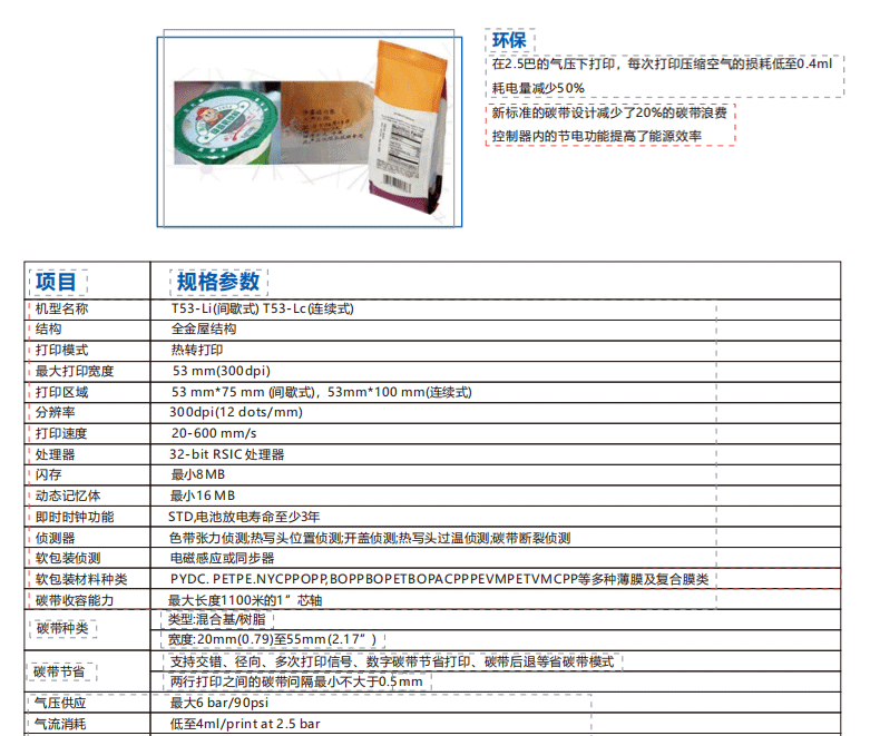 易航T53使用于食品、药品、日化、生活用纸等各类软包装